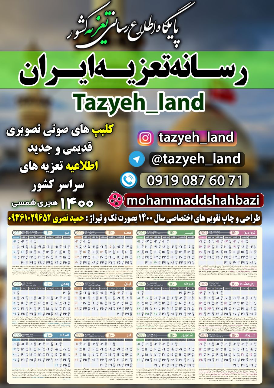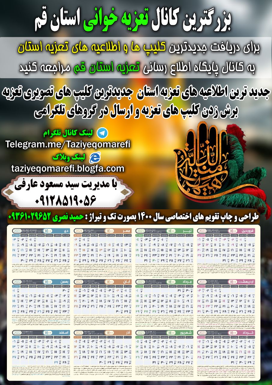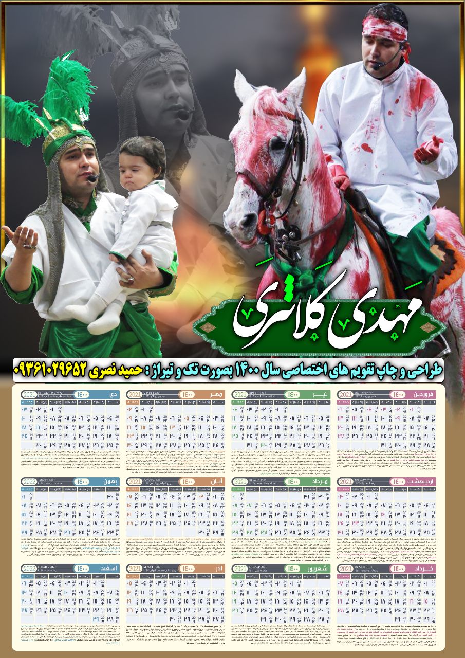 جهت مشاهده بقیه تقویم ها به ادامه مطلب بروید برچسبها: امیر صفری, حاج محسن گیوه کش, مجتبی حسن بیگی, شکرالله جعفری ادامه مطلب [ چهارشنبه بیست و دوم بهمن ۱۳۹۹ ] [ 23:18 ] [ حمید نصری ]